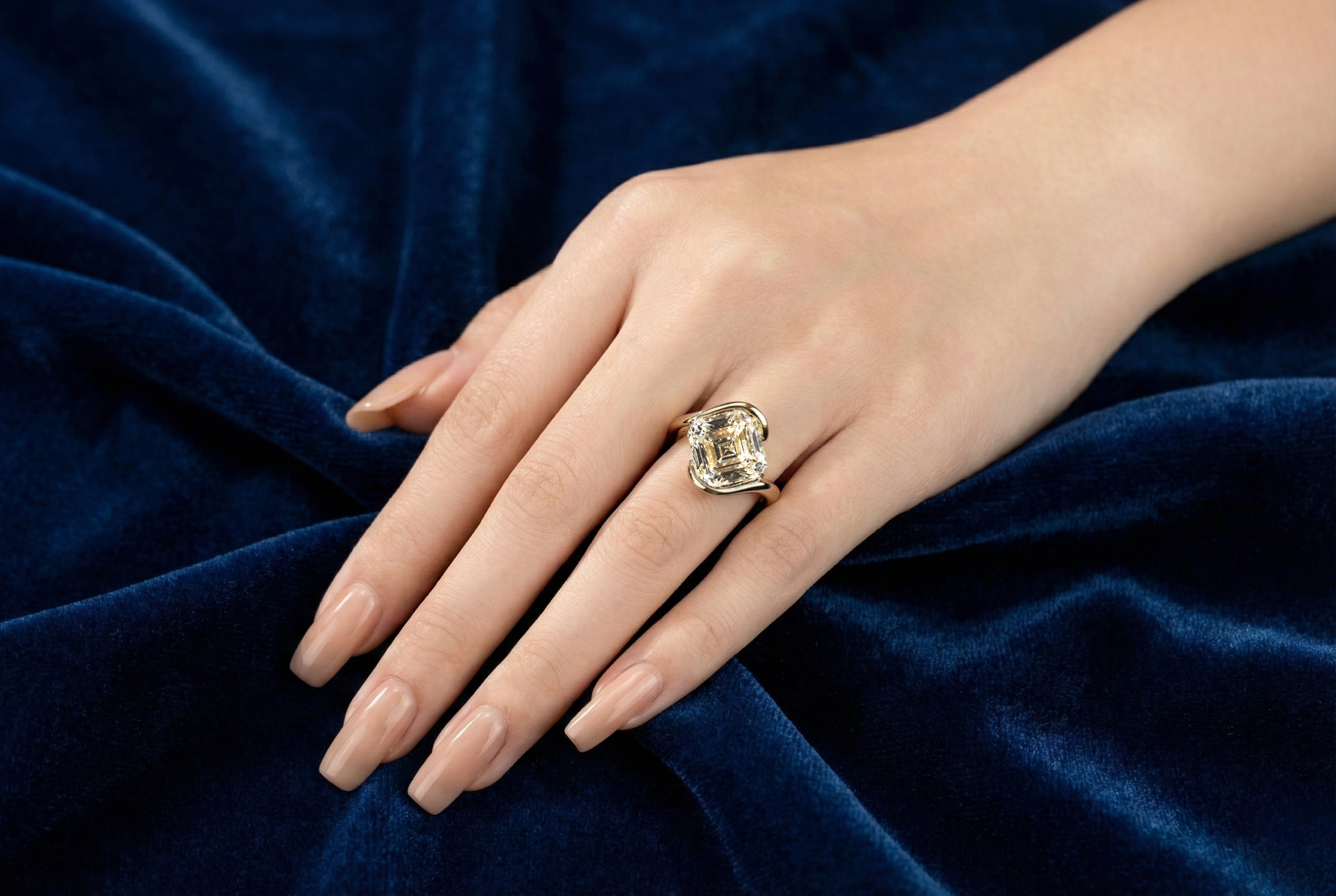 Viên kim cương chủ với độ tinh khiết cao tỏa ánh sáng sắc nét, sâu và lạnh, khiến tổng thể thiết kế trở nên nổi bật một cách tự nhiên. Mỗi cạnh của dáng Emerald phản chiếu vẻ đẹp chính xác, hòa quyện tinh tế giữa đường cong mềm mại và sự sắc sảo của kỹ nghệ.