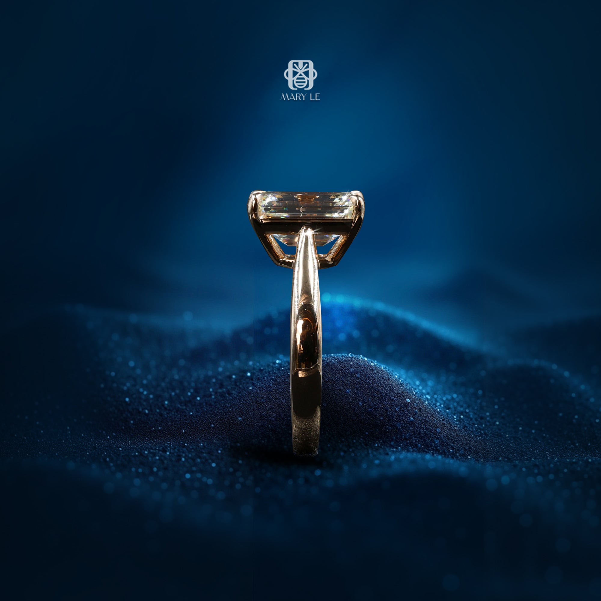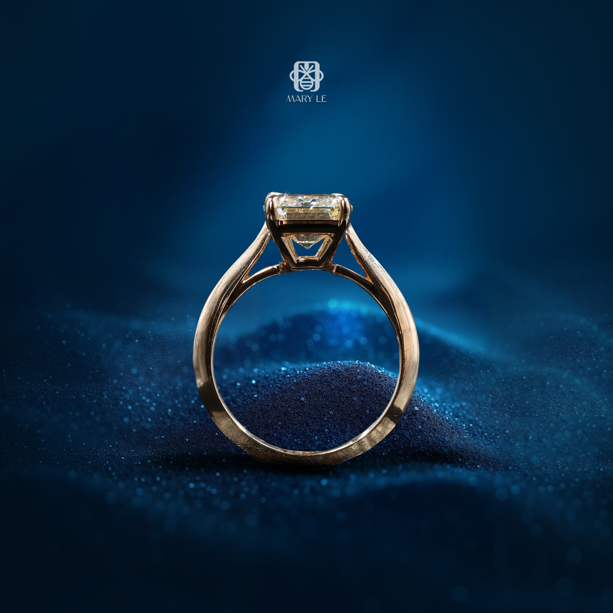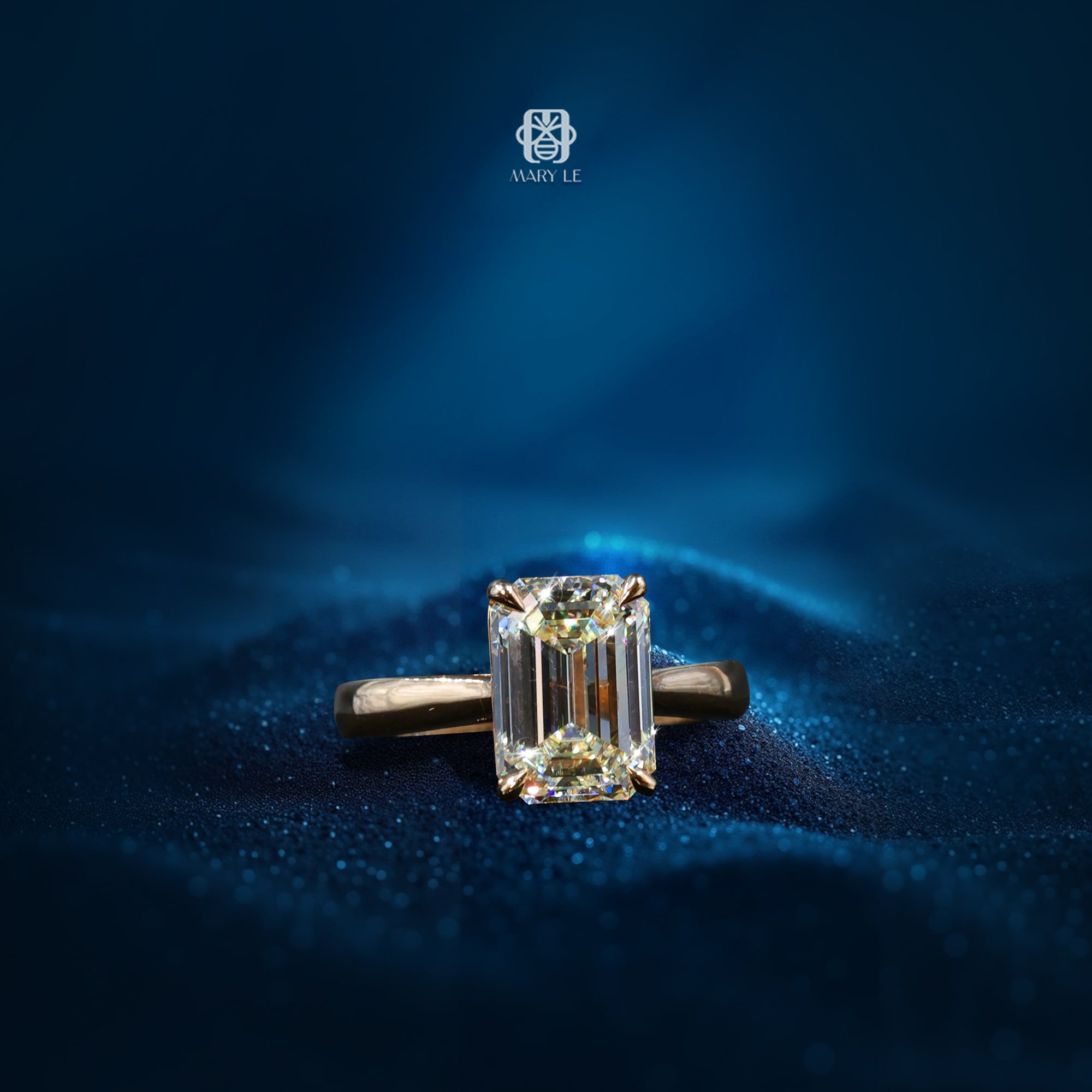 Viên kim cương Emerald 3.52 carat rực rỡ, như một cấu trúc ánh sáng mang trật tự riêng. Những đường cắt hút sâu, thẳng, trong trẻo đến tuyệt đối tạo nên cảm giác của một không gian được sắp đặt hoàn hảo, rõ ràng, tự tin và không nhượng bộ.