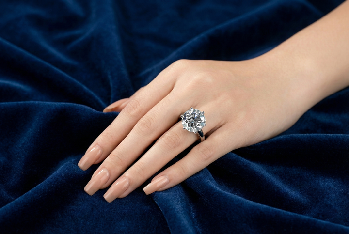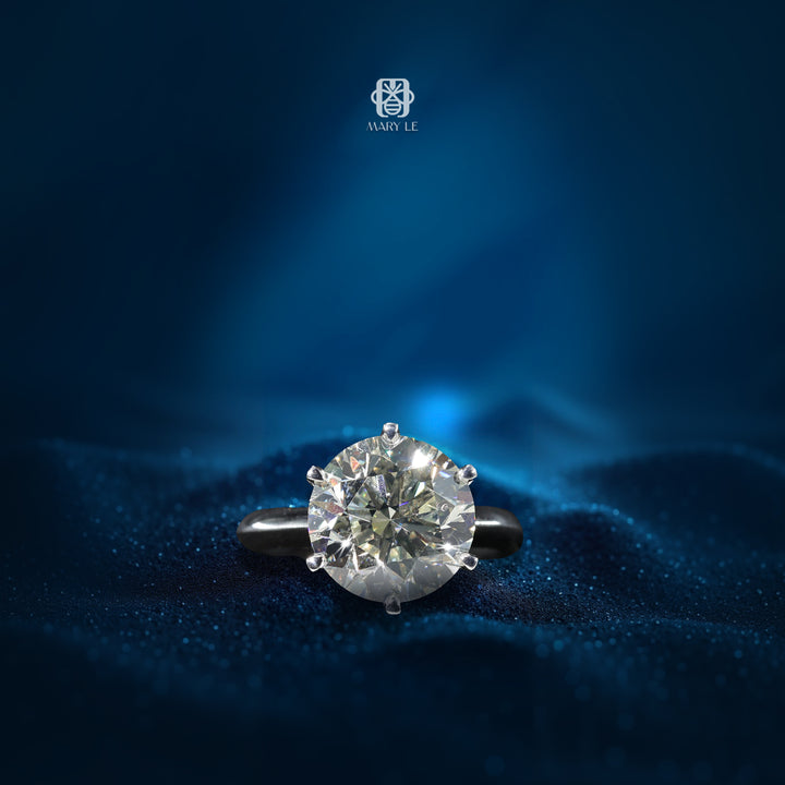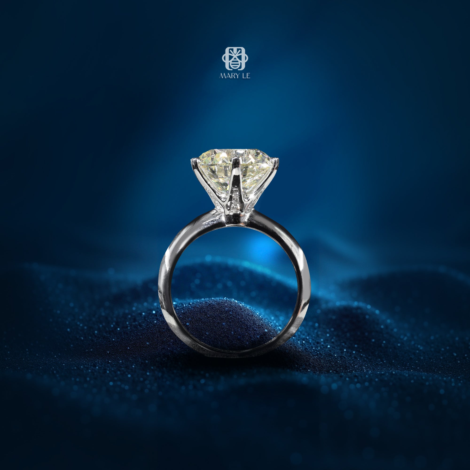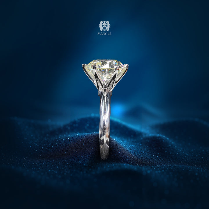 Cấu trúc tròn của viên kim cương chủ 5.34 carat kết hợp với 6 chấu tạo cảm giác của một mặt đồng hồ cổ được thu nhỏ. Mọi tỷ lệ đều được giữ ở mức chuẩn xác: tâm kim cương sáng rõ, sáu điểm chấu neo quanh như những cọc giờ, còn vòng 21 viên kim cương tấm bao ngoài đóng vai trò như vành bezel lấp lánh, mỗi viên là một nhịp chuyển động của thời gian.