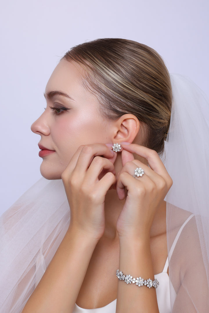 Like a graceful flower blooming in the light, the “Eternal Bloom” earrings are a symbol of pure beauty, femininity and timeless class. At the center of each earring is a round, colorless diamond, weighing 0.92ct and 0.90ct, cut to Triple Excellent (3EX) standards – achieving absolute perfection in cut, symmetry and polish according to GIA certification. These main diamonds shine intensely, reflecting light brilliantly from every angle.