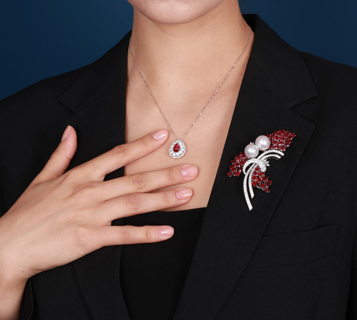 The Ruby Diamond Necklace is a symbol of emotional beauty, where sacred moments are recreated in the language of gemstones. The focal point is a teardrop-shaped ruby with an intense red color, symbolizing passion and vitality. The pendant is set with 74 carefully selected white diamonds, creating a brilliant halo supporting the noble red light. Not only the front, the back of the pendant is also finished with sophisticated diamond details, demonstrating master craftsmanship and dedication in every angle.