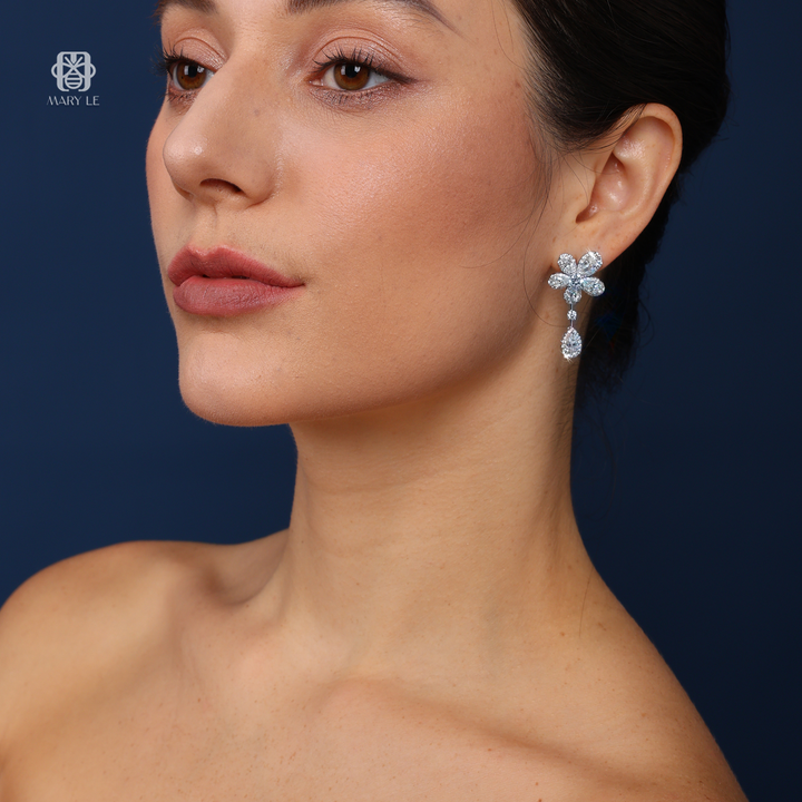 Tựa như những bông hoa đang nở rộ dưới ánh sáng lấp lánh, đôi hoa tai được tạo tác từ 188 viên kim cương rực rỡ, hội tụ thành một tuyệt tác của sự tinh tế. Nổi bật là 12 viên kim cương giọt nước quý hiếm, được khéo léo sắp đặt thành những cánh hoa mềm mại, tôn vinh vẻ đẹp thanh khiết và nữ tính. Mỗi viên kim cương đều được chọn lọc kỹ lưỡng về độ sáng và độ trong, phản chiếu ánh sáng tựa hàng ngàn tia nắng sớm. Sự kết hợp hoàn hảo giữa nghệ thuật chế tác bậc thầy và chất liệu cao cấp biến thiết kế này thành biểu tượng của sự sang trọng và quyến rũ vĩnh cửu.