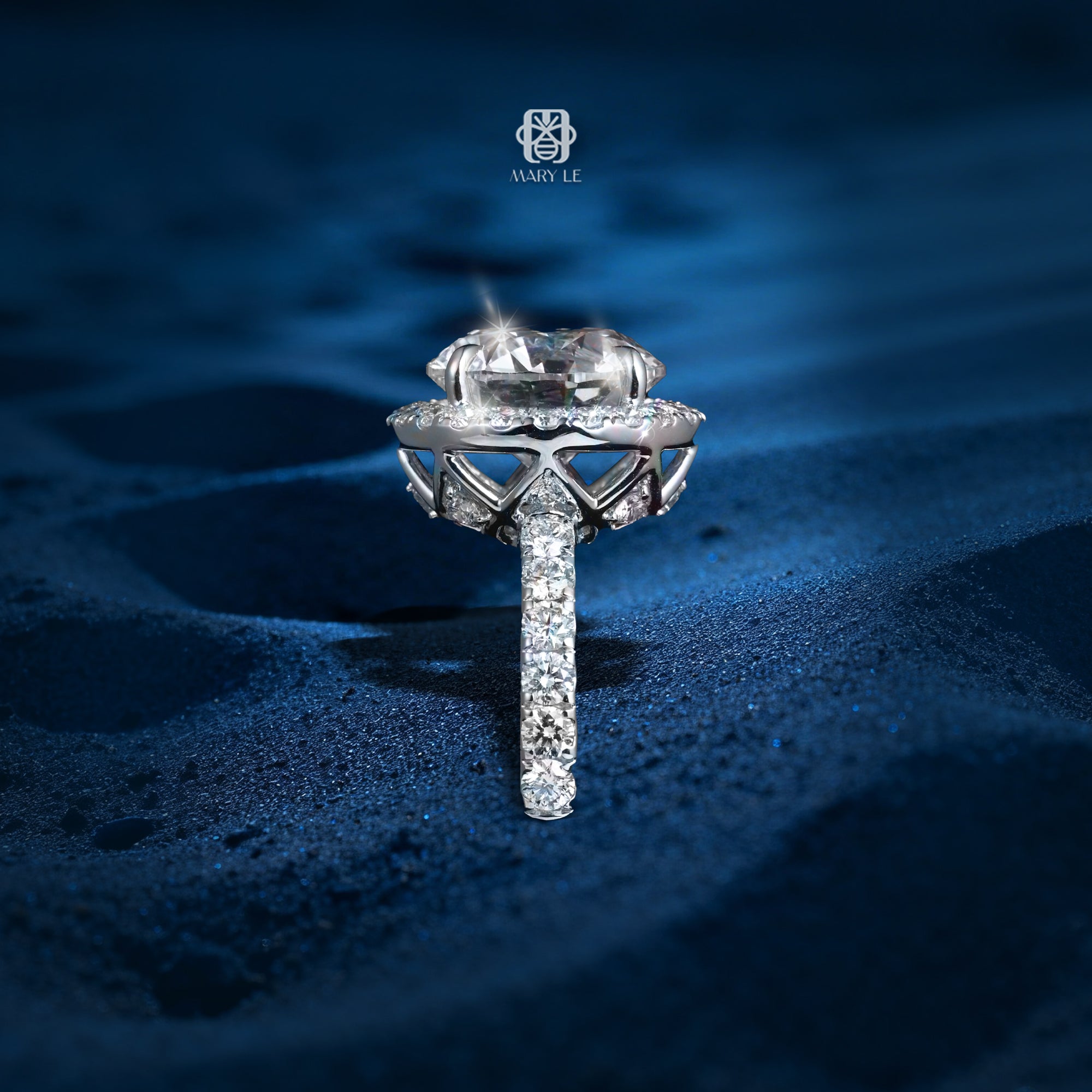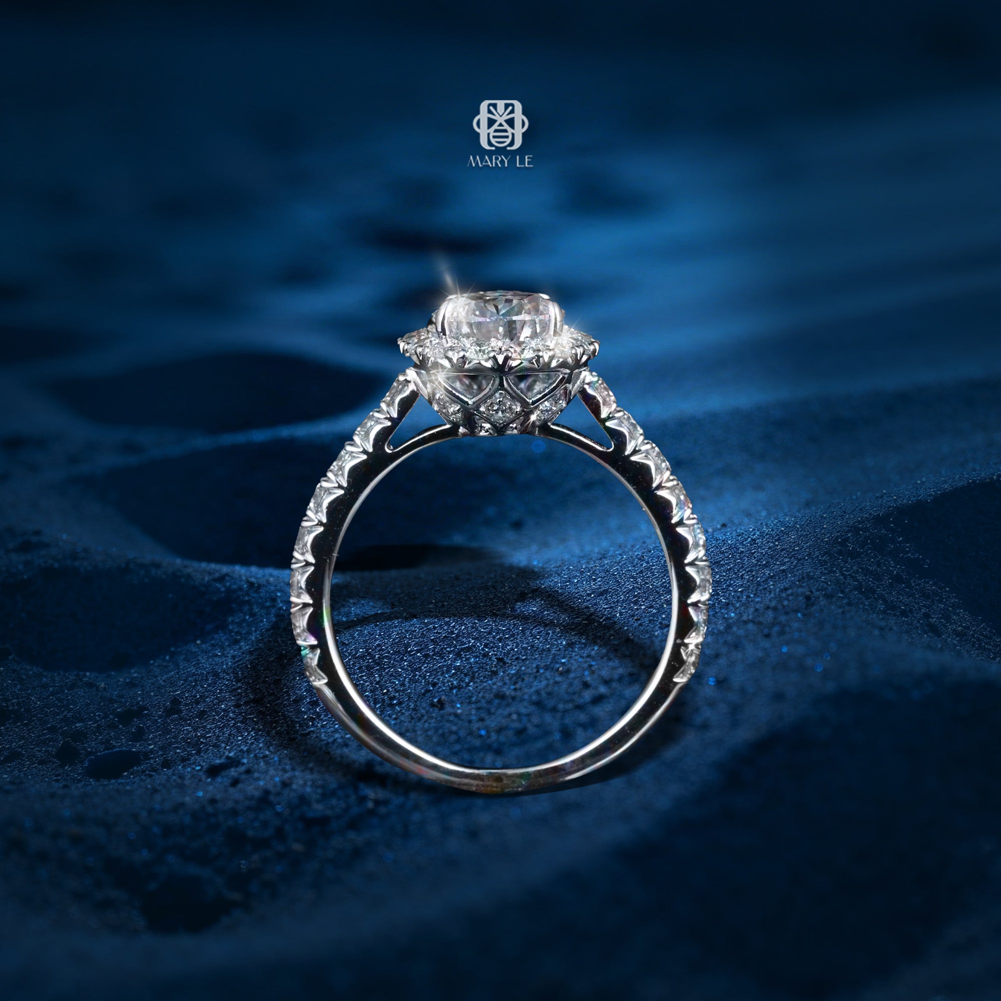 Lấy cảm hứng từ hình cầu – biểu tượng cổ điển của sự trọn vẹn và vĩnh cửu, thiết kế này được phát triển theo ý niệm về một nửa quỹ đạo ánh sáng – nơi viên kim cương chủ như đang nâng đỡ cả một vầng hào quang, phản chiếu vẻ đẹp của vũ trụ thu nhỏ trên đầu ngón tay. Trong lịch sử mỹ học và kiến trúc, hình cầu luôn đại diện cho sự hoàn hảo tuyệt đối – không có điểm bắt đầu, không có điểm kết thúc. Khi được chuyển hóa vào nghệ thuật kim hoàn, đặc biệt là dạng bán cầu (half-sphere), thiết kế không chỉ tạo chiều sâu thị giác mà còn mang đến hiệu ứng ánh sáng đa hướng, giúp viên kim cương tỏa sáng mạnh mẽ hơn ở mọi góc nhìn.