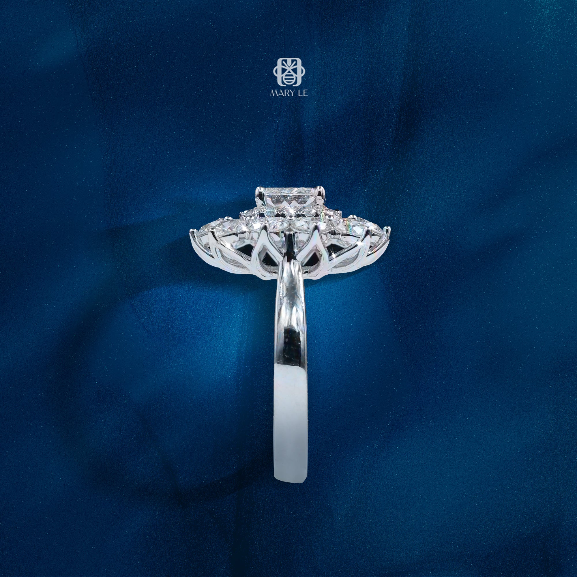 Chiếc nhẫn được làm bằng vàng trắng 18K là sự kết hợp hoàn hảo giữa ánh sáng và nghệ thuật chế tác, lấy cảm hứng từ hình ảnh đóa hoa rực rỡ vươn mình đón nắng.