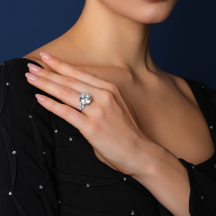 Lời hứa vĩnh cửu bắt đầu từ ánh nhìn đầu tiên. Chiếc nhẫn đính hôn sở hữu viên kim cương chủ tròn 3.4 carat nước E – một trong những cấp độ màu gần như hoàn mỹ trong thế giới kim cương, mang vẻ đẹp tinh khiết, thanh lịch và rạng rỡ bất tận. Giác cắt tròn cổ điển là biểu tượng của tình yêu trọn vẹn và viên mãn – không có điểm bắt đầu cũng không có điểm kết thúc.