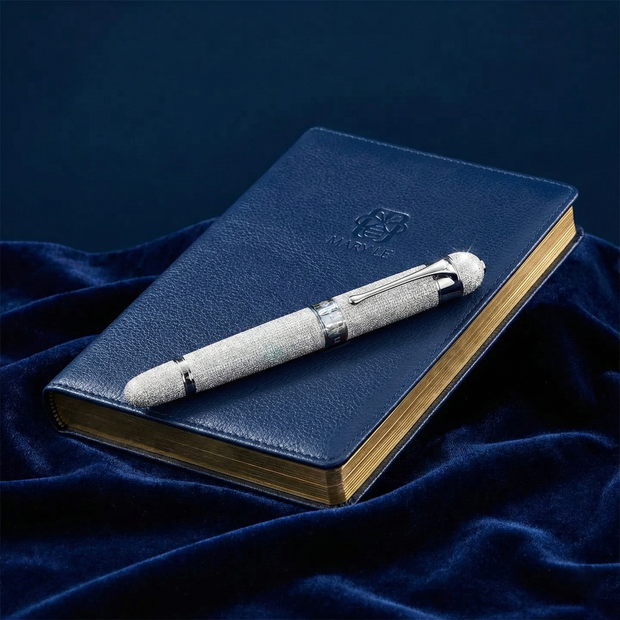 The signature pen is crafted from 5.500 D–E color diamonds, casting a radiant brilliance in the palm of your hand. Its luxurious design features gleaming metal contours, exquisite engravings, and perfect proportions - delivering a firm, balanced grip that embodies both elegance and authority. This is more than just a pen; it is a symbol of stature, vision, and the personal legacy of a true leader.